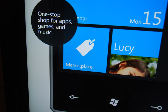 Although Microsoft is not talking about third party applications or the marketplace on the Windows Phone 7 Series here this week at Mobile World Congress 2010, a promotional interactive banner at the event is indicating that there will be one unified “Marketplace” for applications, games and music.